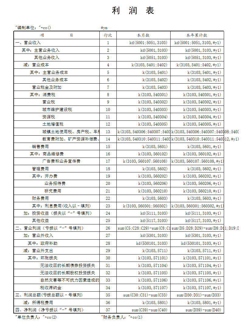 格式:k(利润或结余科目,支出或费用科目,报告期文件,取数范围,取数标志)